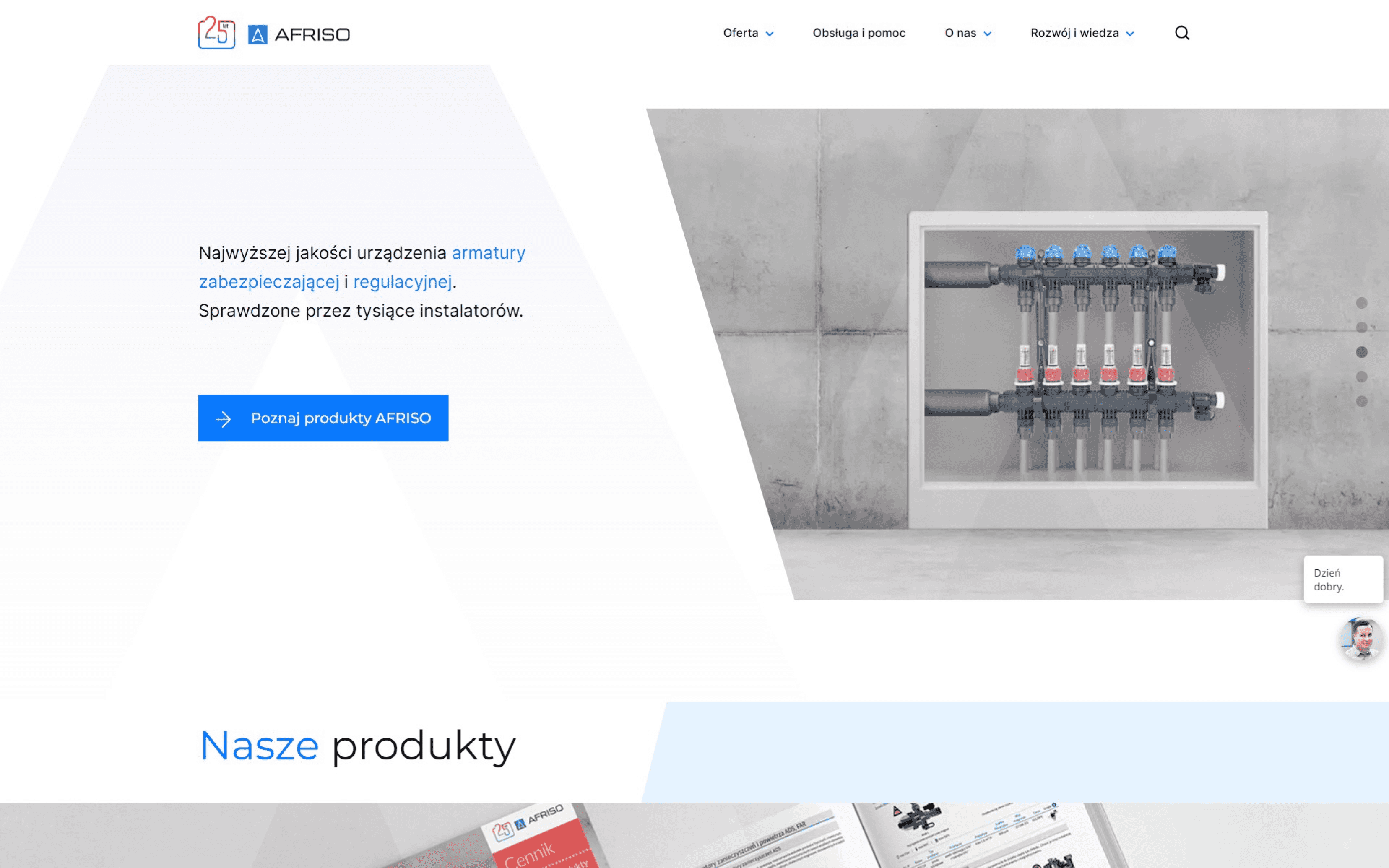 AFRISO’s existing Content Management System (CMS) served as a multifunctional platform. It included a news module, product catalog (sourced from external databases), technical documentation, certifications, user manuals, and a large knowledge base with videos and product usage guides.